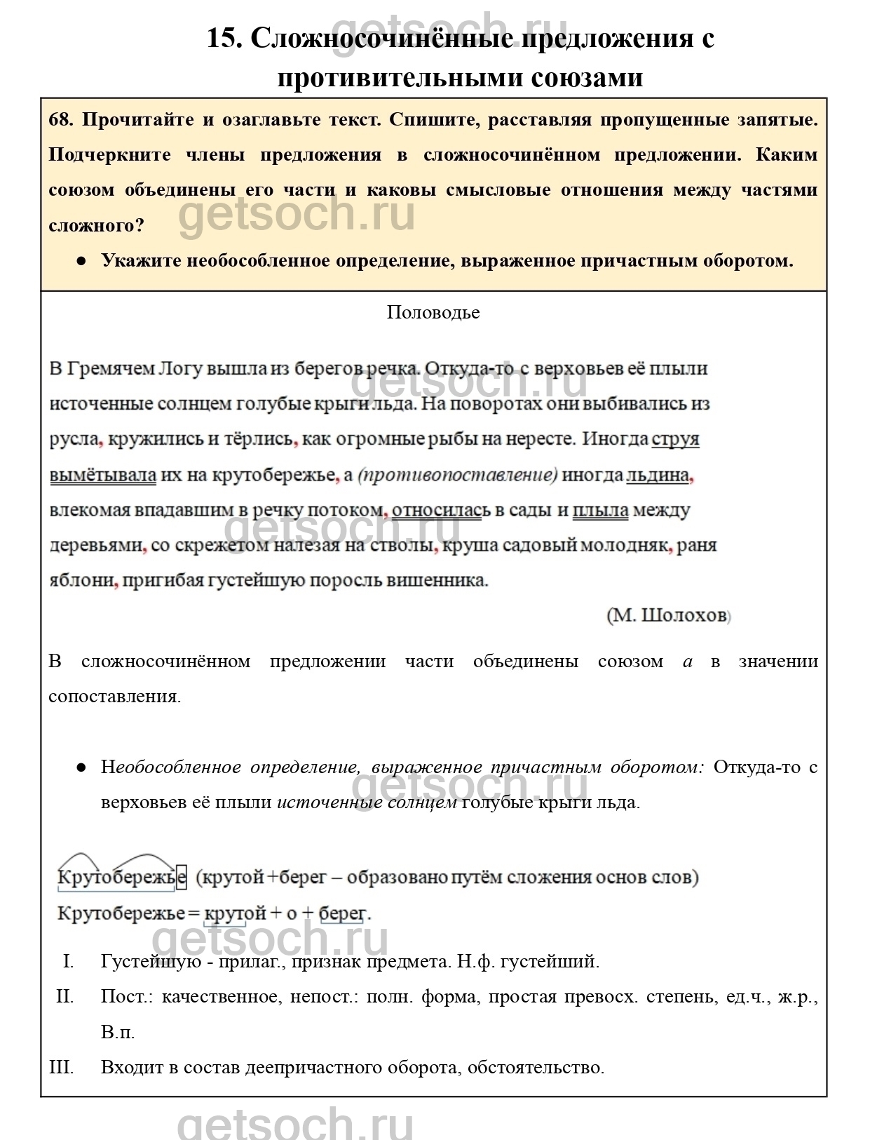 Рассмотрим ответы на Упражнение 68 из учебника по русскому языку для 9 класса Ладыженской