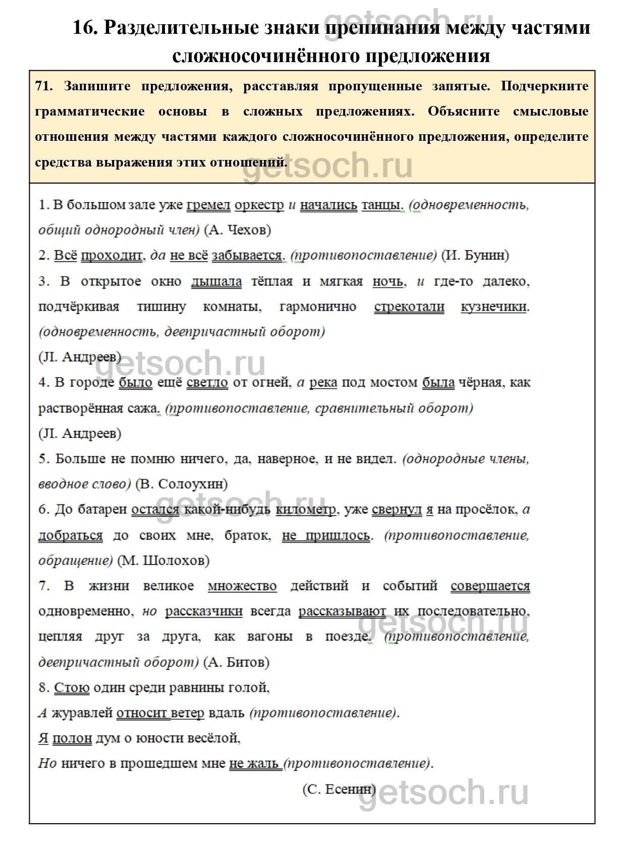 Рассмотрим ответы на Упражнение 71 из учебника по русскому языку для 9 класса Ладыженской
