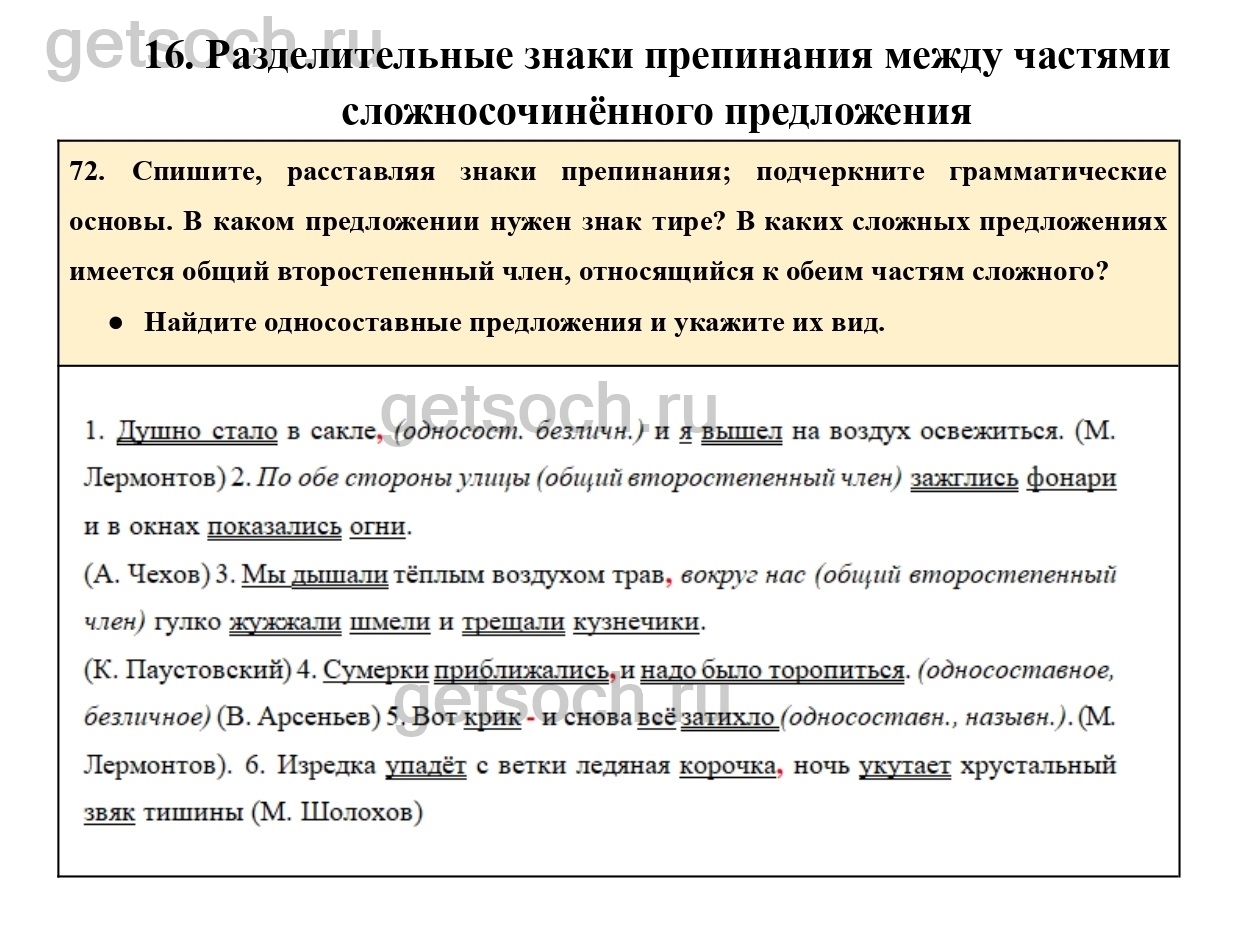 Рассмотрим ответы на Упражнение 72 из учебника по русскому языку для 9 класса Ладыженской