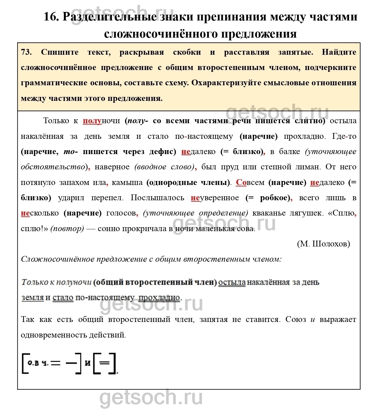 Рассмотрим ответы на Упражнение 73 из учебника по русскому языку для 9 класса Ладыженской