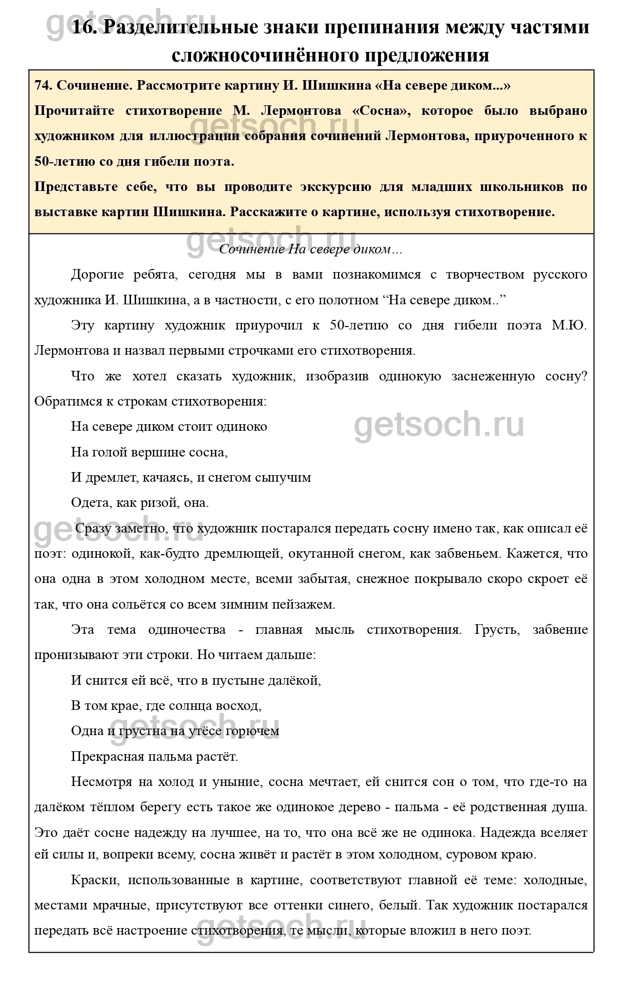 74. Сочинение. Рассмотрите картину И. Шишкина «На севере диком…»