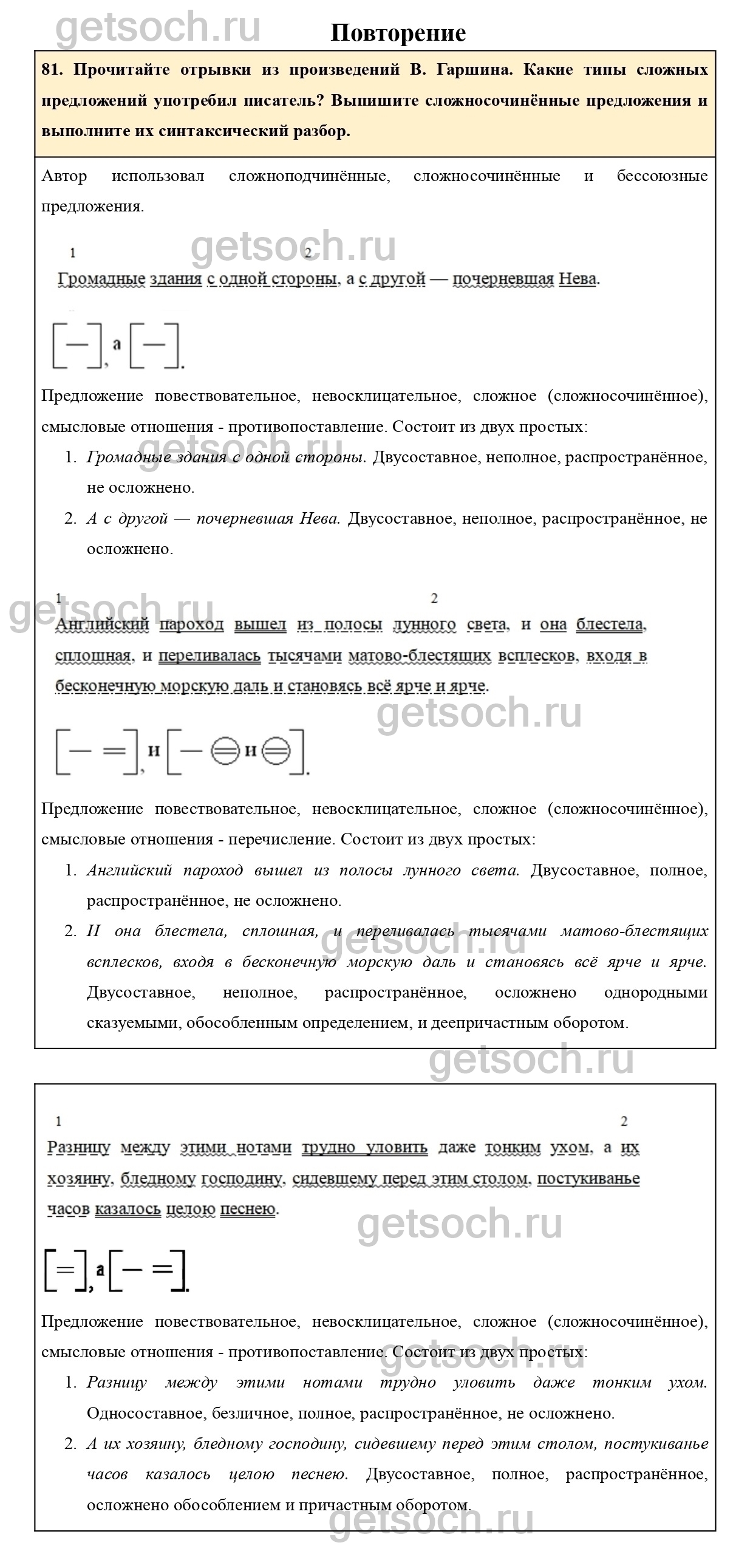 81. Прочитайте отрывки из произведений В. Гаршина. Какие типы сложных предложений употребил писатель? Выпишите сложносочинённые предложения и выполните их синтаксический разбор.
