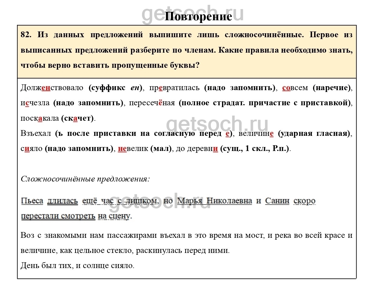 82. Из данных предложений выпишите лишь сложносочинённые. Первое из выписанных предложений разберите по членам. Какие правила необходимо знать, чтобы верно вставить пропущенные буквы?