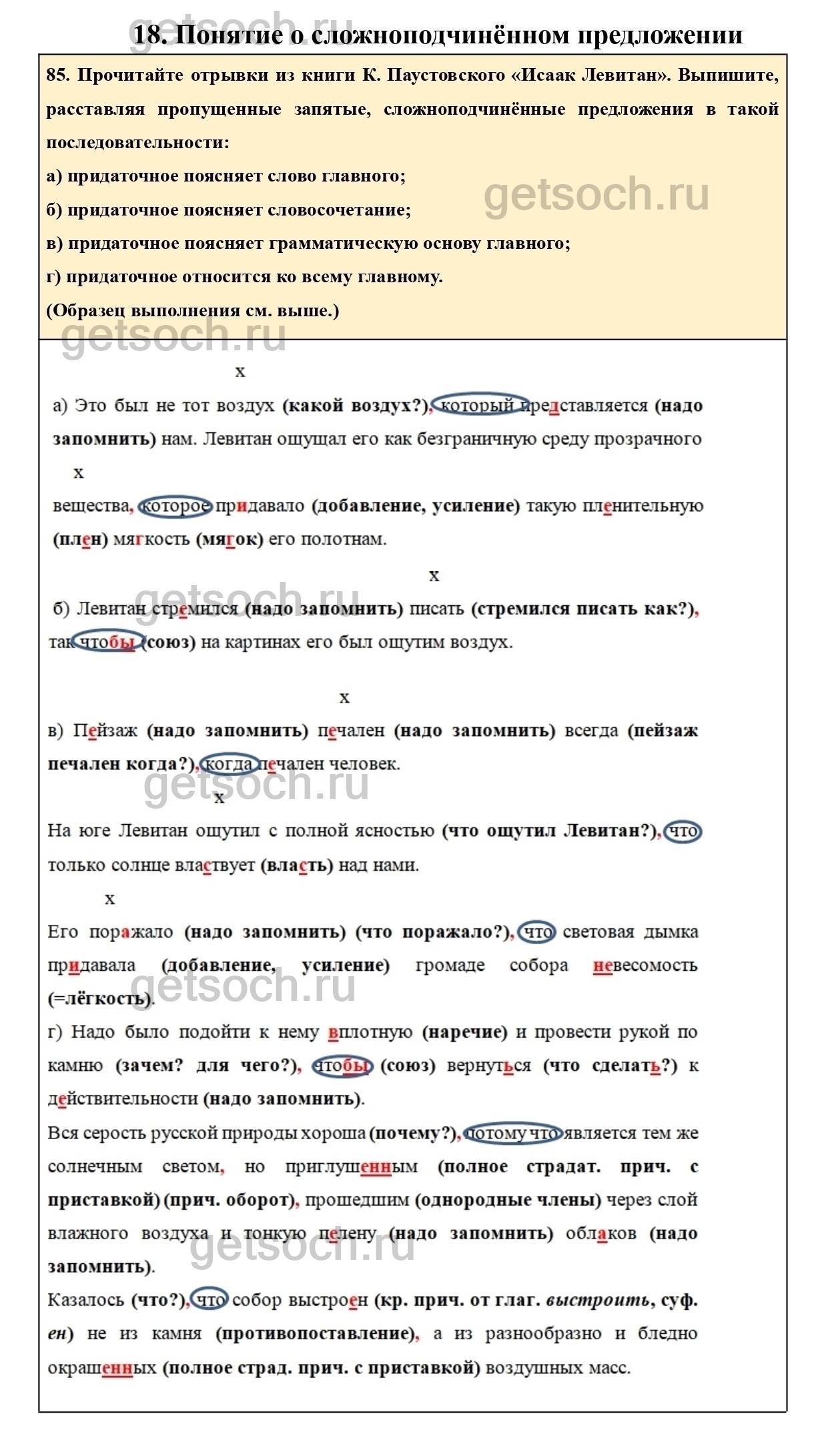 85. Прочитайте отрывки из книги К. Паустовского «Исаак Левитан». Выпишите, расставляя пропущенные запятые, сложноподчинённые предложения в такой последовательности: