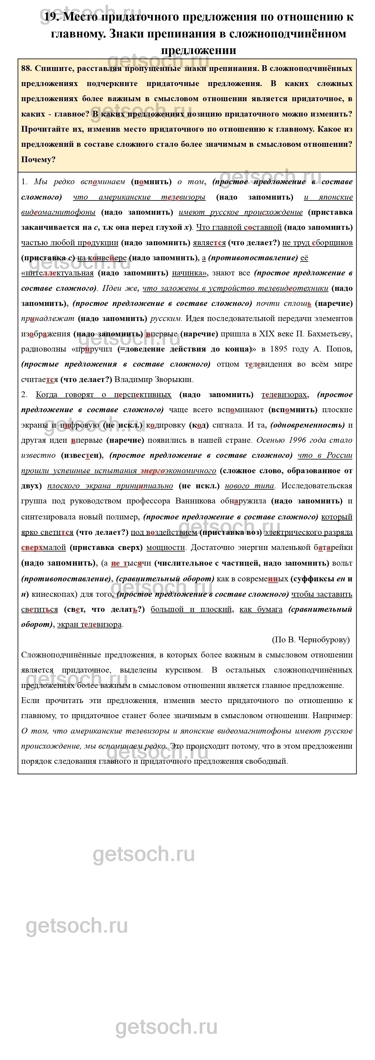 Рассмотрим ответы на Упражнение 88 из учебника по русскому языку для 9 класса Ладыженской
