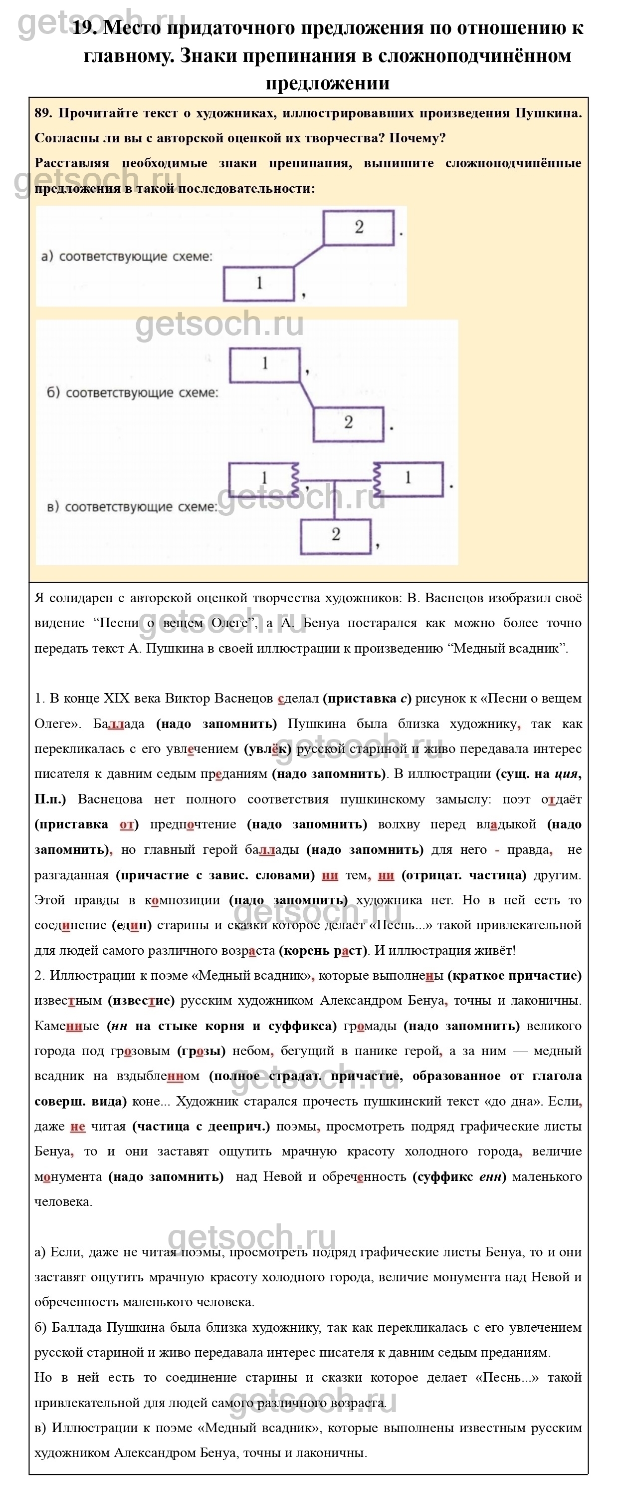 Рассмотрим ответы на Упражнение 89 из учебника по русскому языку для 9 класса Ладыженской