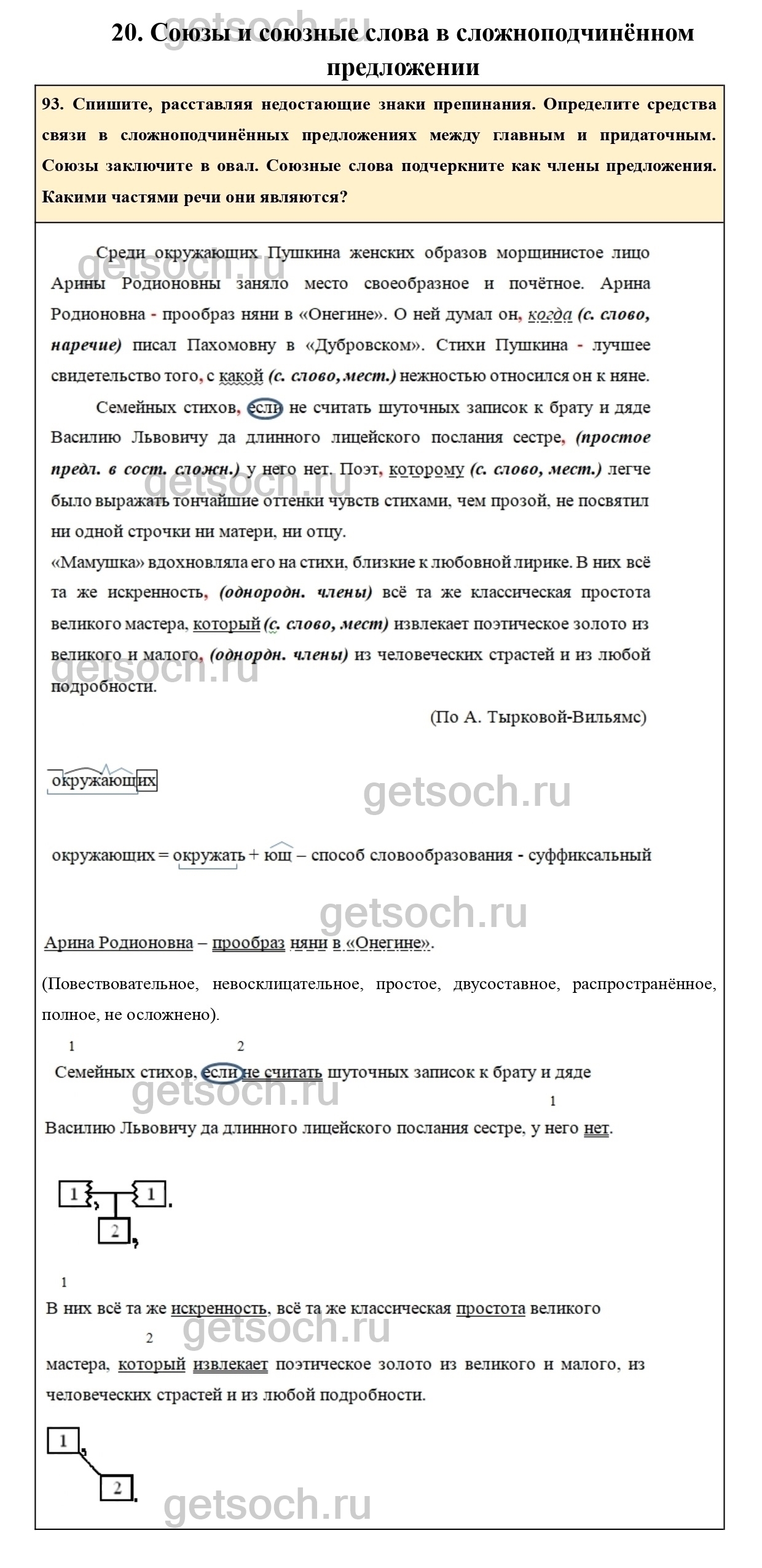 93. Спишите, расставляя недостающие знаки препинания. Определите средства связи в сложноподчинённых предложениях между главным и придаточным. Союзы заключите в овал. Союзные слова подчеркните как члены предложения. Какими частями речи они являются?