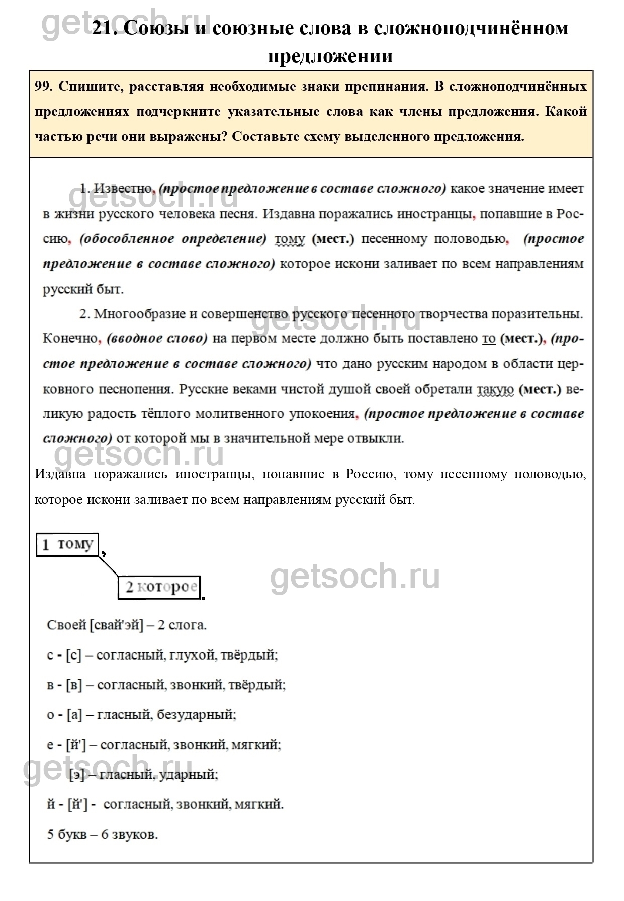 Рассмотрим ответы на Упражнение 99 из учебника по русскому языку для 9 класса Ладыженской